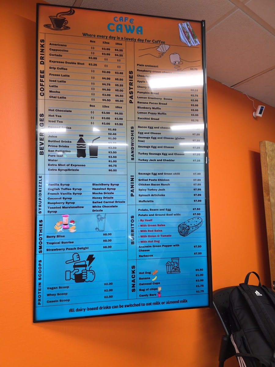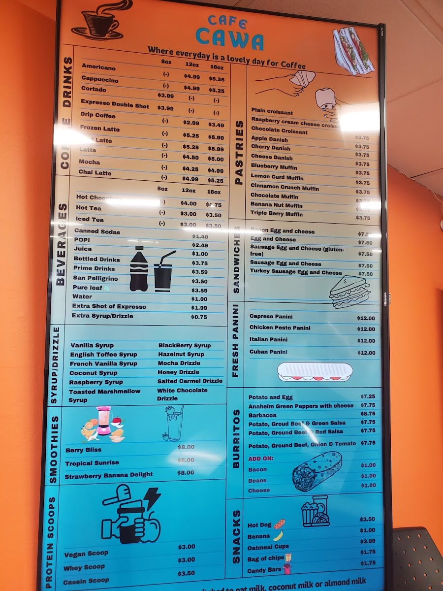 Located at 4155 E Jewell Ave #101 in Denver, CO, this spot is ideal for meeting friends or grabbing a quick pick-me-up while you’re out and about. The atmosphere is warm and welcoming, making it a great place to relax and enjoy your food and drinks. Whether you're a regular or a first-time visitor, the Cawa Coffee Menu promises a comforting experience every time.